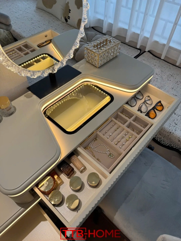Trong không gian phòng ngủ hiện đại, bàn trang điểm không chỉ đơn thuần là nơi phục vụ nhu cầu làm đẹp mà còn là yếu tố góp phần hoàn thiện tổng thể thiết kế nội thất, thể hiện phong cách sống và gu thẩm mỹ của gia chủ. Bàn trang điểm cao cấp mã BTD25 do TTBHOME thiết kế và sản xuất chính là sự lựa chọn hoàn hảo dành cho những ai đang tìm kiếm một sản phẩm nội thất chất lượng cao, thiết kế tinh tế, độ bền vượt trội và an toàn cho sức khỏe.