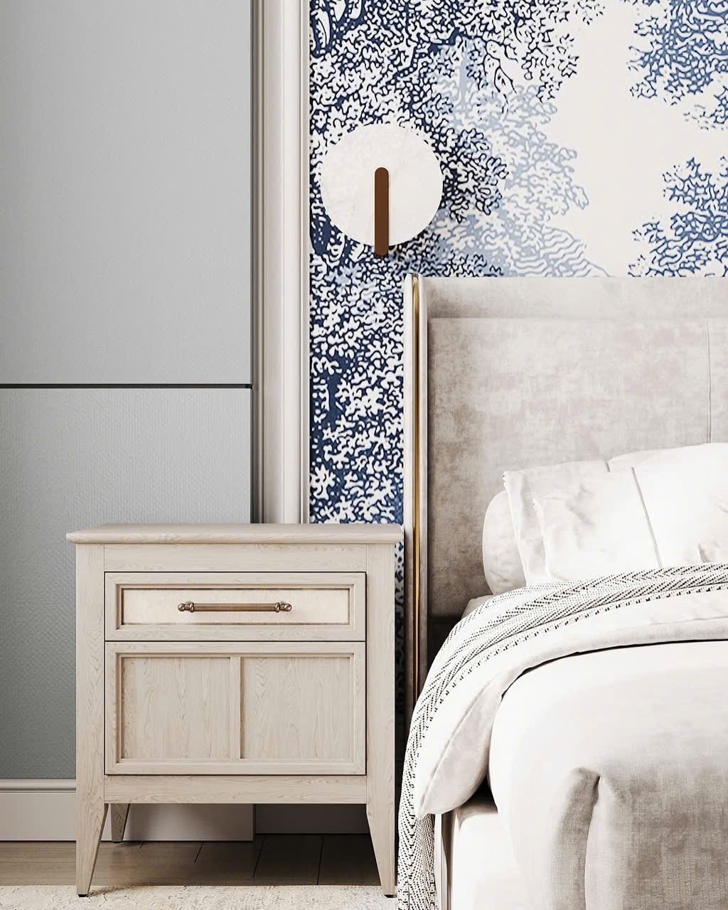 Bề mặt bọc nệm phẳng, tôn lên vẻ nhẹ nhàng nhưng vẫn cao cấp. Khi kết hợp cùng các tone màu trung tính như kem, xám, be, ghi hoặc nâu nhạt, TTB05 dễ dàng hòa hợp với hầu hết phong cách nội thất từ tối giản, hiện đại đến sang trọng.