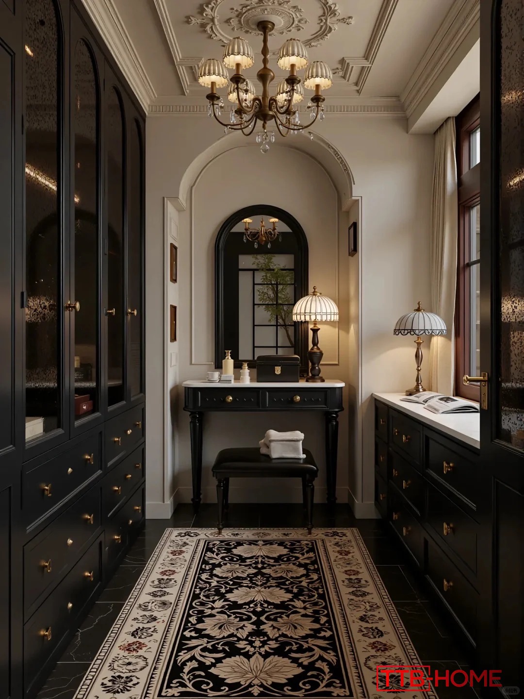 Từng chi tiết phào chỉ, tay nắm tủ, đèn chùm, gương soi… đều được chọn lọc và bố trí tinh tế để tôn vinh vẻ đẹp cổ điển nhưng không nặng nề, mang lại cảm giác quý phái, trang nhã và đậm chất châu Âu.
