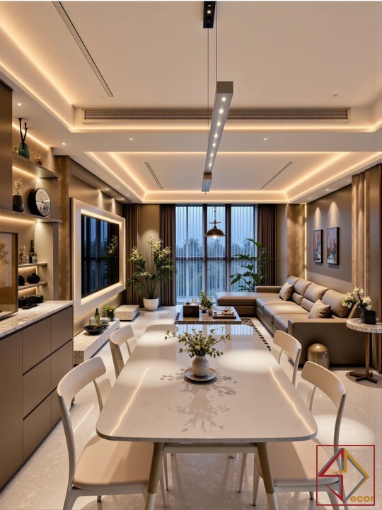Để tận dụng tối đa lợi thế diện tích 121m2, việc áp dụng không gian mở (Open-plan) cho khu vực sinh hoạt chung là giải pháp tối ưu. Sự liên thông giữa phòng khách, phòng ăn và bếp giúp không gian trở nên rộng rãi, thoáng đãng và tăng cường kết nối gia đình.