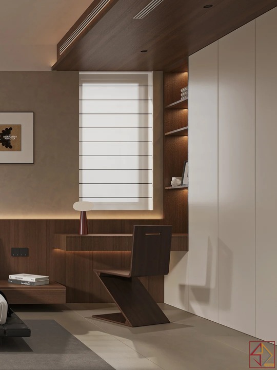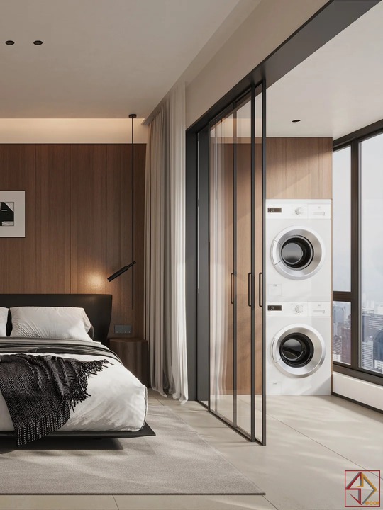 • Đồ nội thất thông minh, đa năng: Mọi món đồ đều được lựa chọn kỹ lưỡng để tối ưu công năng. Ví dụ, thiết kế bàn làm việc liền kề tủ quần áo. Hoặc giường ngủ bệt với ngăn kéo lưu trữ bên dưới, giúp không gian gọn gàng và tiện nghi hơn.