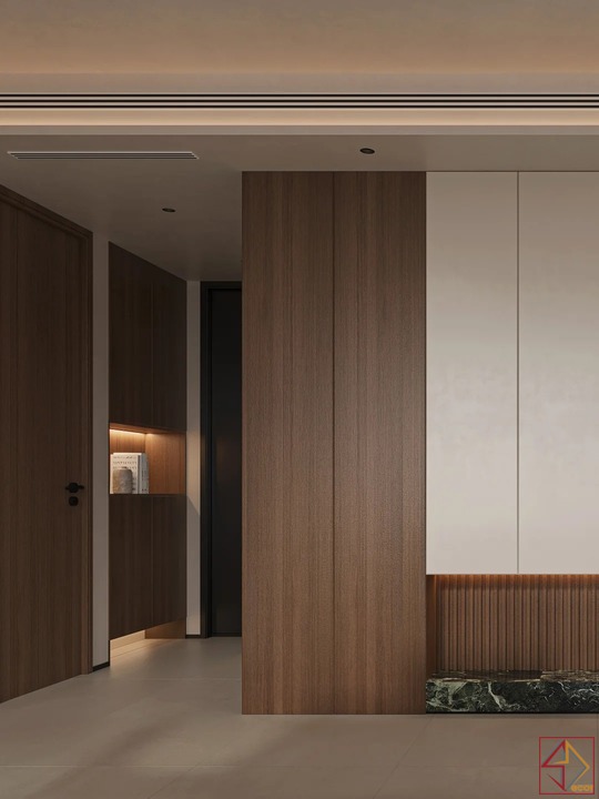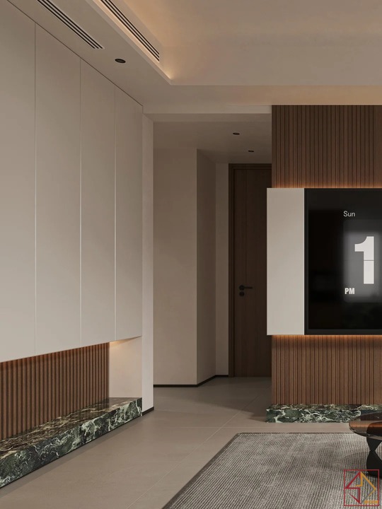 • Màu sắc tinh tế và sang trọng: Sử dụng các tone màu trung tính như trắng, be, xám và nâu gỗ làm chủ đạo. Sự kết hợp hài hòa giữa các gam màu này tạo nên một không gian nhẹ nhàng, thanh lịch và ấm cúng.