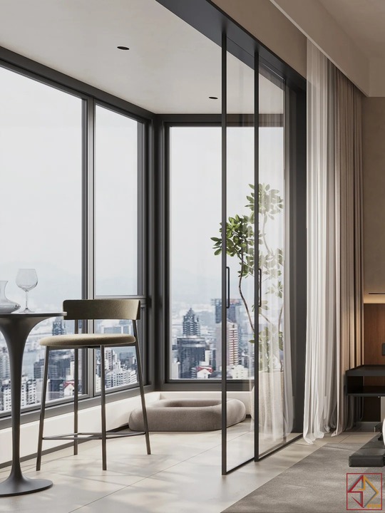 • Ánh sáng là “nghệ thuật”: Ánh sáng tự nhiên được tận dụng tối đa qua hệ cửa kính lớn, mở rộng tầm nhìn ra bên ngoài.
