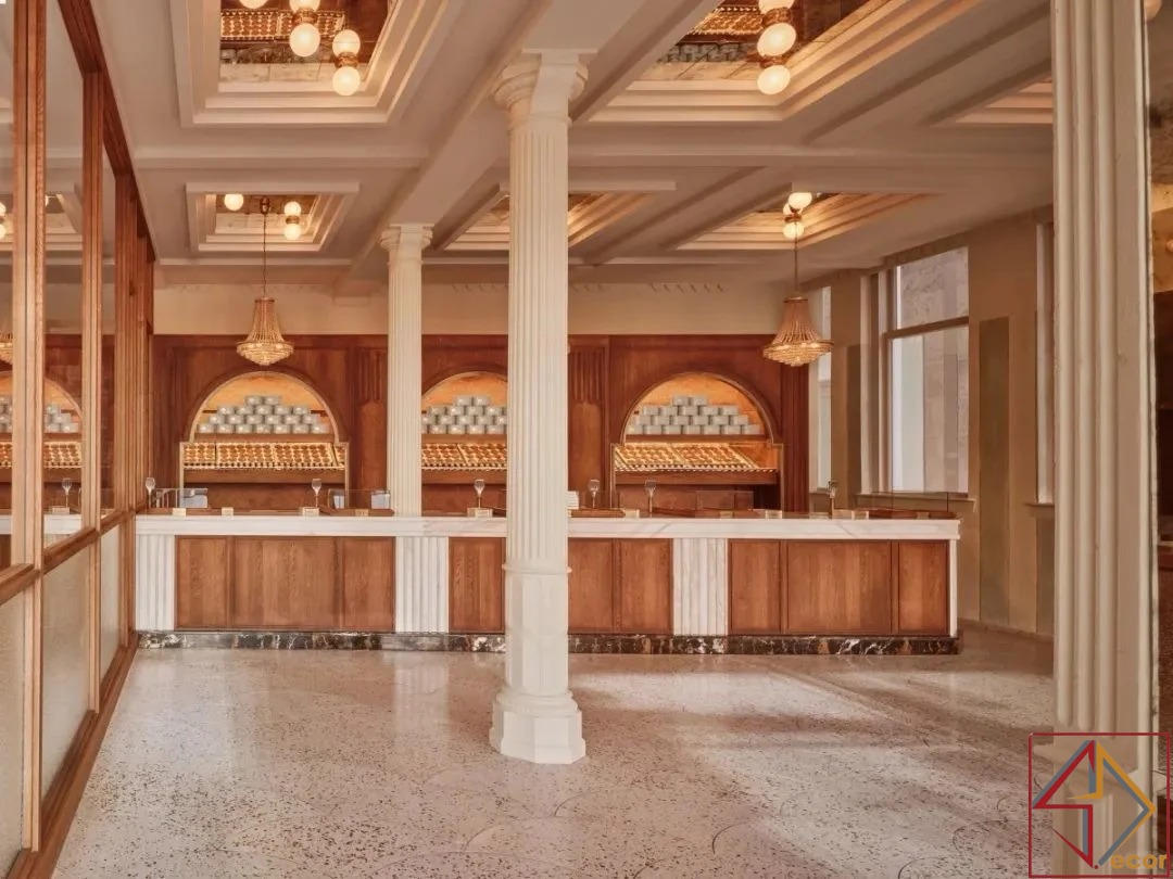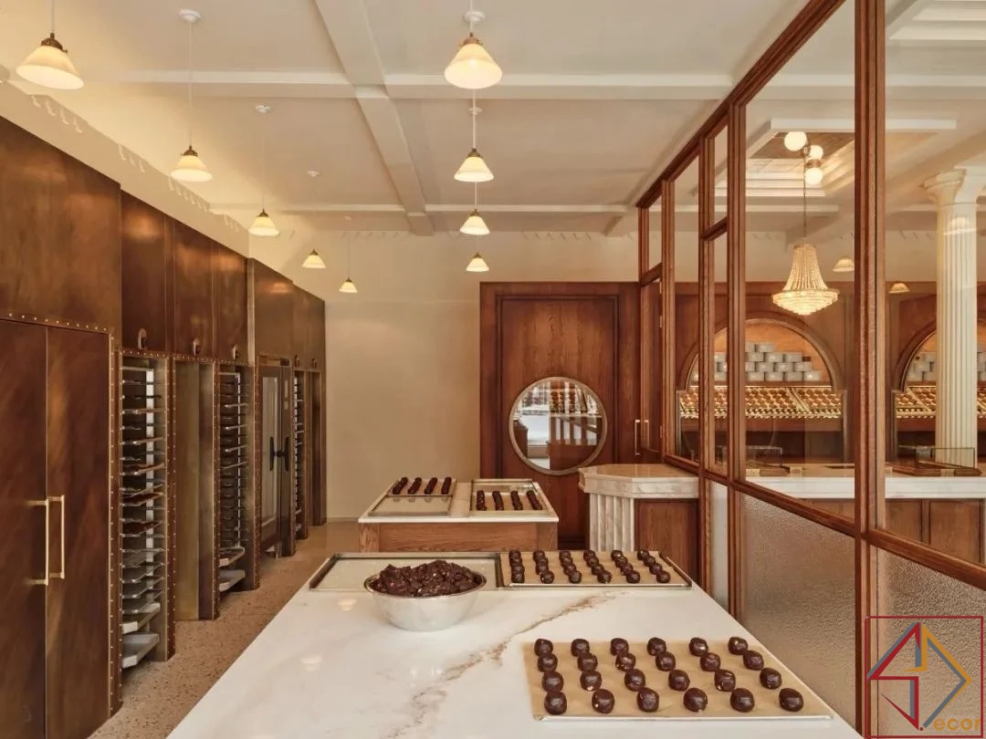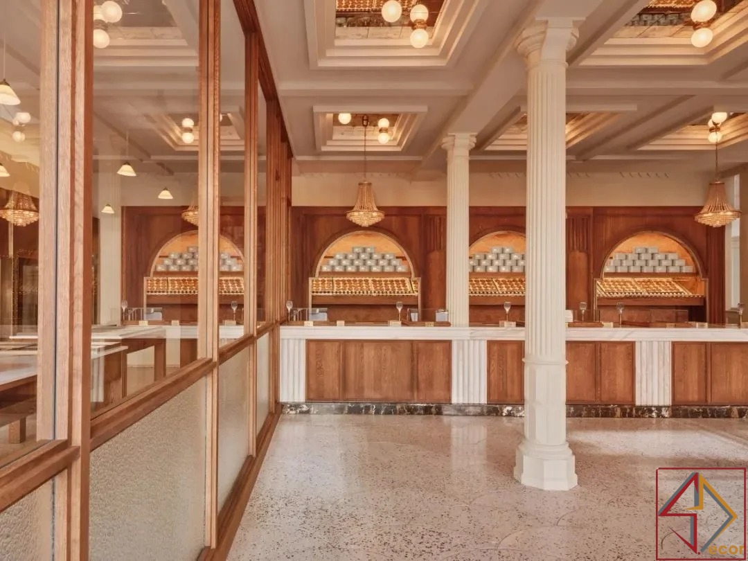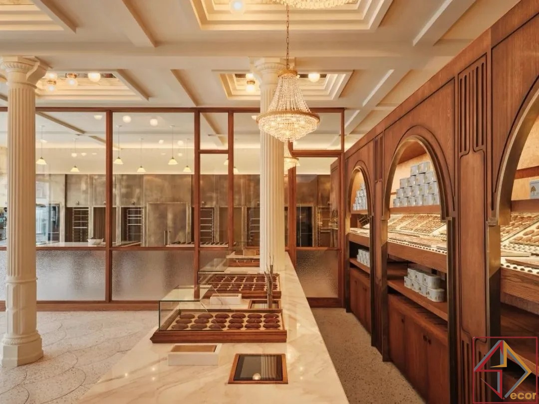 Điểm Nhấn Đồng/Vàng: Các điểm nhấn kim loại tinh tế, có thể là đồng hoặc vàng, có thể được nhìn thấy trong các thiết bị chiếu sáng và có thể là một số yếu tố trưng bày, tăng thêm cảm giác sang trọng.