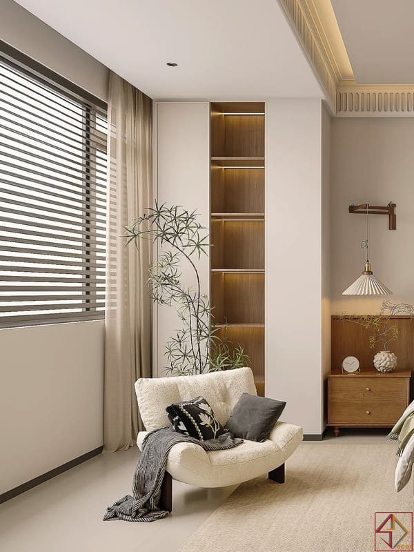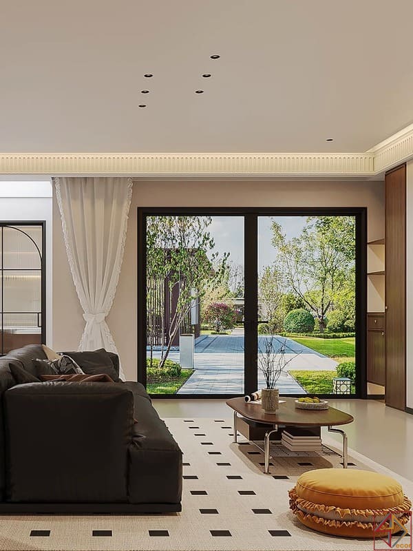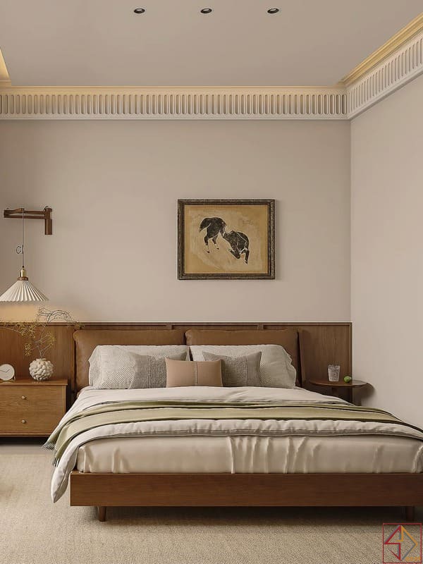 3. Nét nghệ thuật tinh tế: Các chi tiết trang trí như phào chỉ trần nhà, đèn treo hay tranh ảnh được lựa chọn cẩn thận, tạo điểm nhấn cá tính và nghệ thuật cho không gian, không gây cảm giác đơn điệu.
