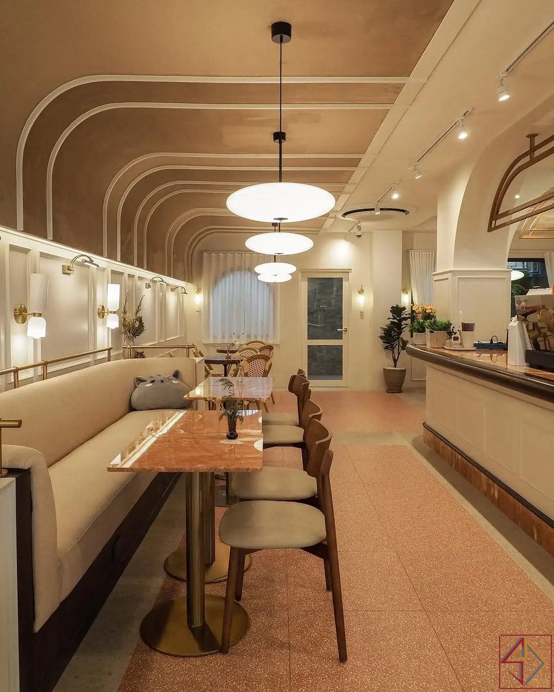 Vào buổi tối, những chiếc đèn thả kiểu dáng Industrial hay Retro phát ra ánh sáng vàng ấm áp. Kết hợp với đèn spotlight và đèn hắt tinh tế, tạo nên một không gian đa lớp, lung linh và vô cùng lãng mạn.