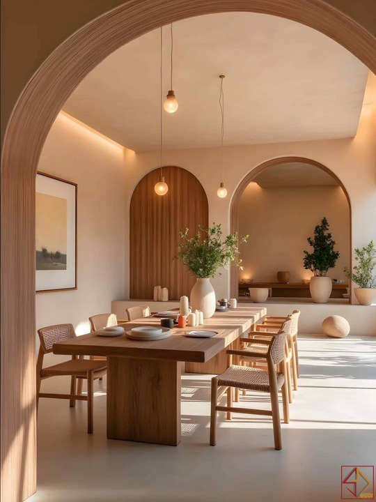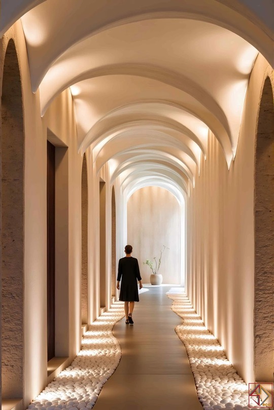 • Kiến trúc vòm và đường cong: Mang lại cảm giác mềm mại, uyển chuyển và thư thái.