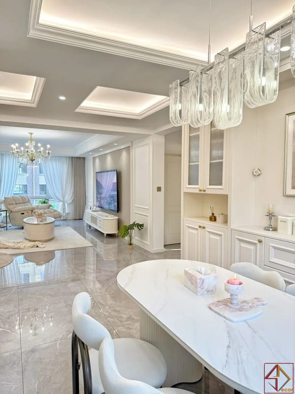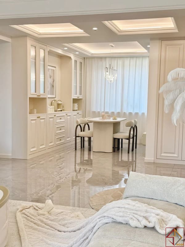 Mô tả tổng quan về dự án Thiết kế nội thất Chung cư Kingdom 101 – Căn hộ 3PN Thông tin tổng quan về Thiết kế nội thất Chung cư Homyland riverside Tên dự án Chung cư Diện tích 81M2 Công năng 2PN, Phòng khách, Bếp, Khu vực ăn uống, Phòng thay đồ, WC Địa điểm
