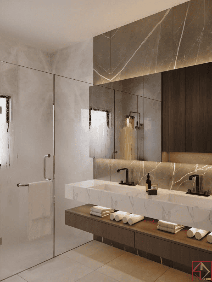 | Ánh sáng thông minh | Kết hợp hài hòa ánh sáng tự nhiên với hệ thống đèn hắt trần, đèn âm trần, đèn LED dải và đèn trang trí để tạo nhiều lớp ánh sáng, phù hợp với từng khu vực và mục đích sử dụng. |